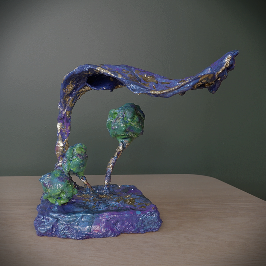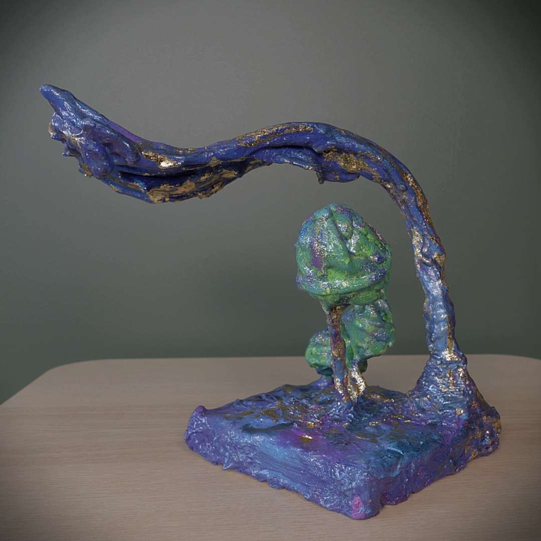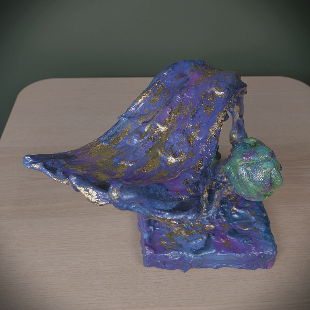 One of a kind mixed media sculpture, painted with acrylics.