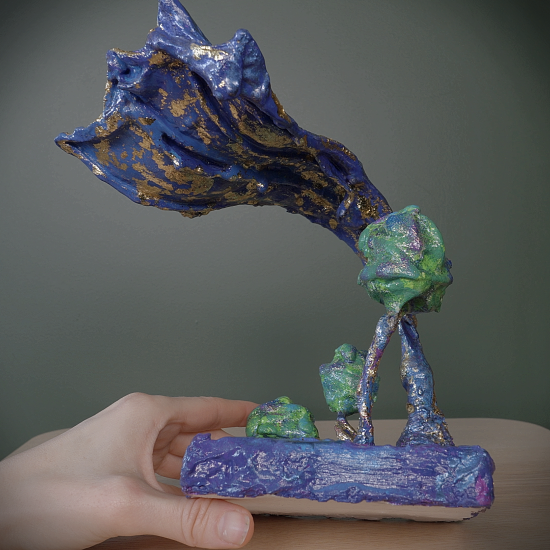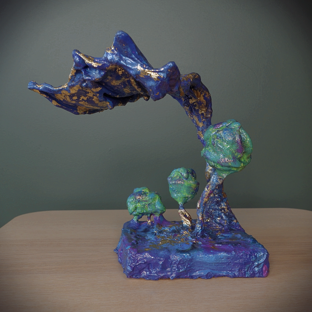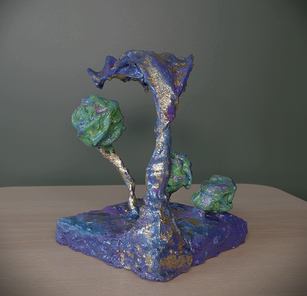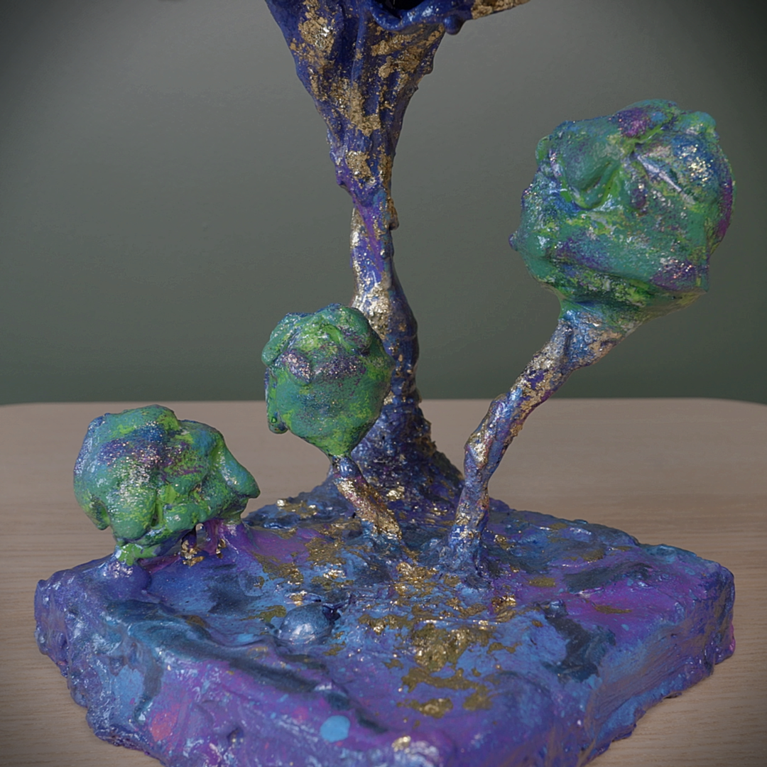 One of a kind mixed media sculpture, painted with acrylics.